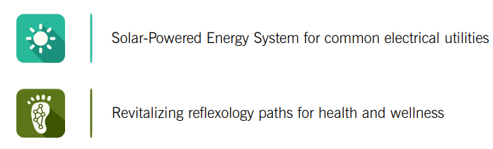 • Private meditation and yoga spaces for relaxation and mindfulness
