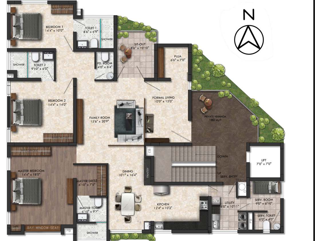 • Premium wooden flooring in the master bedroom and imported marble in the remaining areas